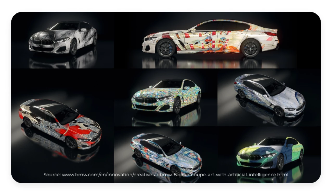 A multinational German company that produces luxury cars has successfully implemented artificial intelligence in marketing examples. The brand decided to turn its cars into digital masterpieces through the power of generative AI. To bridge the gap between art and technology, the brand launched this stunning campaign that combined both and perfectly represents how art can be aesthetically combined with vehicles. The designs are inspired by the works of renowned artists across the globe.