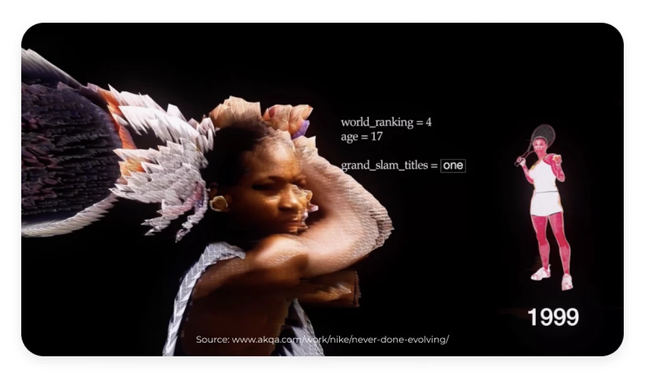 Nike always celebrates the achievements of the legendary athletes. This time, the brand decided to showcase the stunning evolution of Serena Williams throughout the years. With the unparalleled assistance of smart algorithms and machine learning, the company created a virtual match-up between Serena of 1999 and Serena of 2017 to demonstrate how her skills and techniques evolved over time.