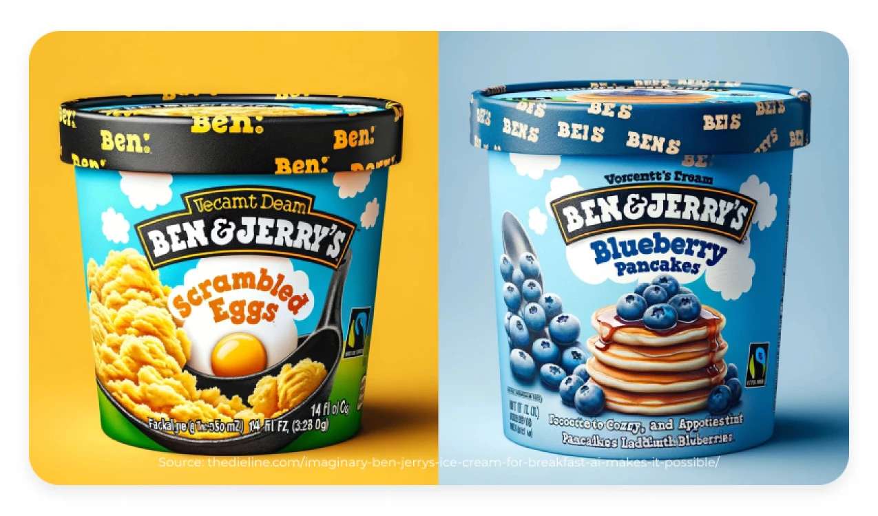 A famous brand of ice cream featuring iconic flavors also effectively implemented AI to boost their product development. The brand came up with an exciting idea of utilizing generative algorithms to create images of different breakfast-themed ice cream flavors and connect with their customers in a very interesting way.