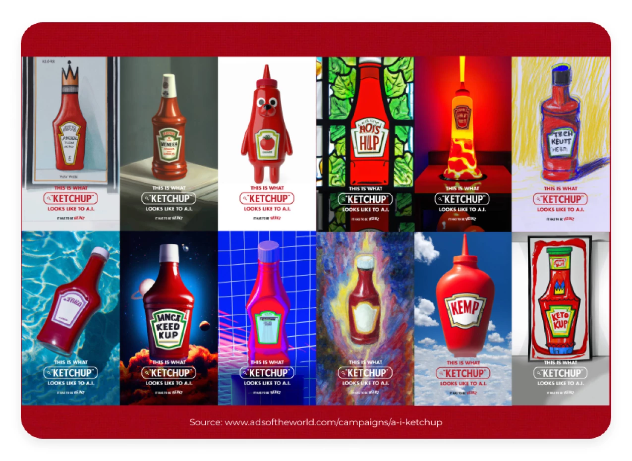 AI in advertising examples represented above is interesting, but here you can also see one of the most impressive cases from a global brand that produces condiments and a variety of sauces, but it’s most famous for its ketchup.