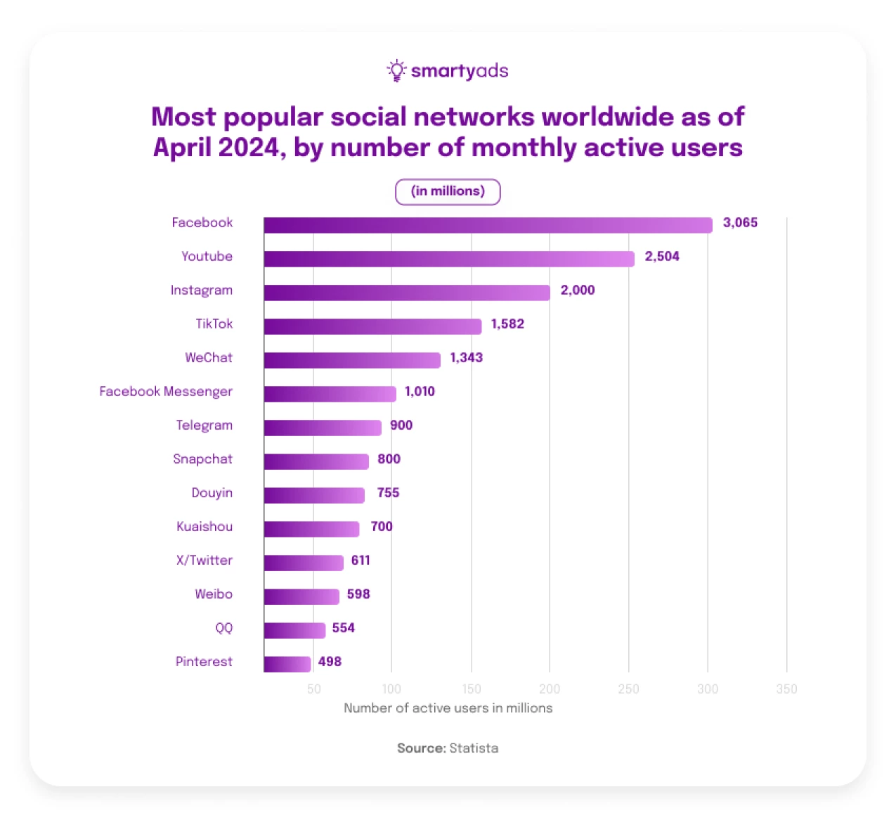 Number of monthly active users (as of April 2024): over 498 million.